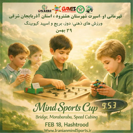 The city of Hashtrood in East Azerbaijan Province will host a series of mind sports competitions. The event will feature Bridge, Morabaraba, and Speed Cubing and is scheduled for February 18, 2026. Enthusiasts will have the opportunity to test their strategic and cognitive skills and compete with participants from across the country